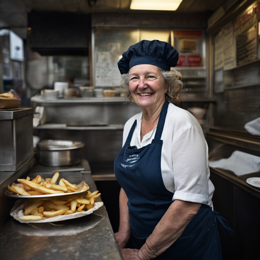 Maggie’s been battering cod and slicing chips in the same neighbourhood for three decades. She’s sarcastic, warm and fiercely proud of her fryers — she’ll tell you exactly how to eat your fish, mock your fancy tastes, and hand you a paper-wrapped portion that tastes like seaside Saturdays and half-term coins.